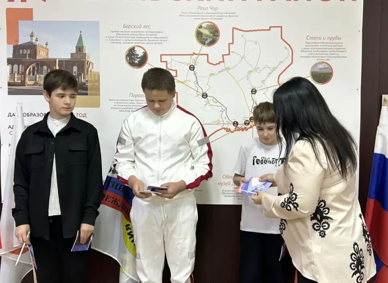 26.11.202525 ноября состоялась торжественная церемония вручения паспортов юным Обливчанам. В рамках Всероссийской акции «Мы – граждане России!» школьники Гарапшин Тимур, Гирниченко Вадим и Иванов Алексей получили свой первый важный документ.