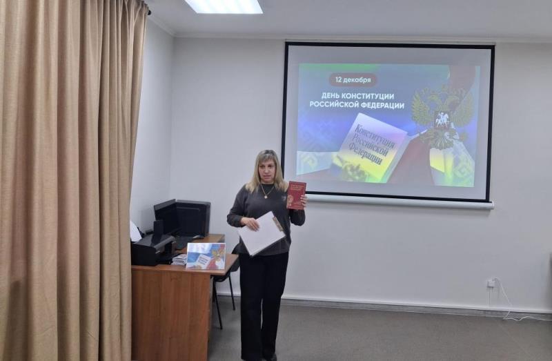 11.12.202512 декабря в нашей стране отмечают один из самых значимых государственных праздников - День Конституции Российской Федерации. К этой дате член участковой избирательной комиссии № 1484 Оксана Карнаухова для участников клуба «Молодой избиратель» при межпоселенческой центральной библиотеки Обливского района провела час информации «Есть множество разных законов, но главный поверьте один».