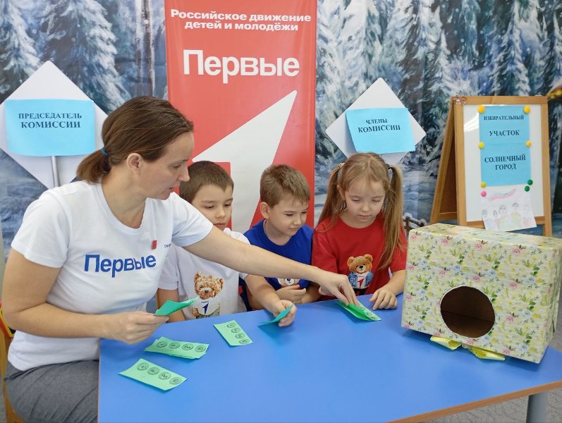 Мероприятие, в котором приняли участие дети и взрослые, началось с исполнения гимна РФ. Ребята, став избирателями, со всей ответственностью и гордостью проголосовали за понравившегося кандидата.