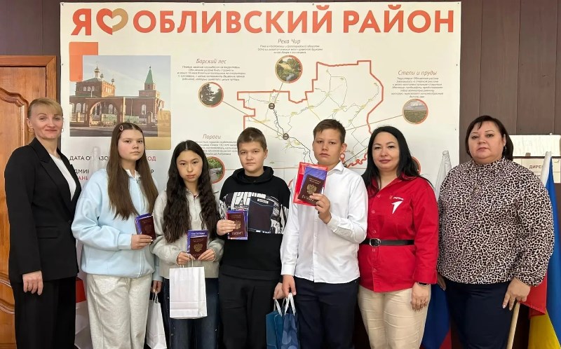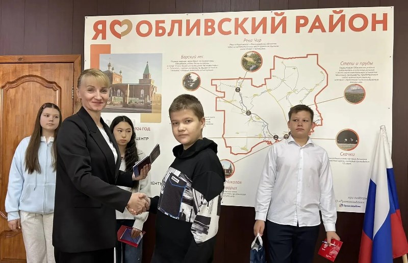 24 апреля состоялась торжественная церемония вручения паспортов 14-летним гражданам России. Директор МФЦ Обливского района Татьяна Коротеева, заместитель председателя Территориальной избирательной комиссии Обливского района Ирина Попова и председатель местного отделения Движения первых Ольга Богданова вручили 4 молодым гражданам Обливского района их первый важный документ.