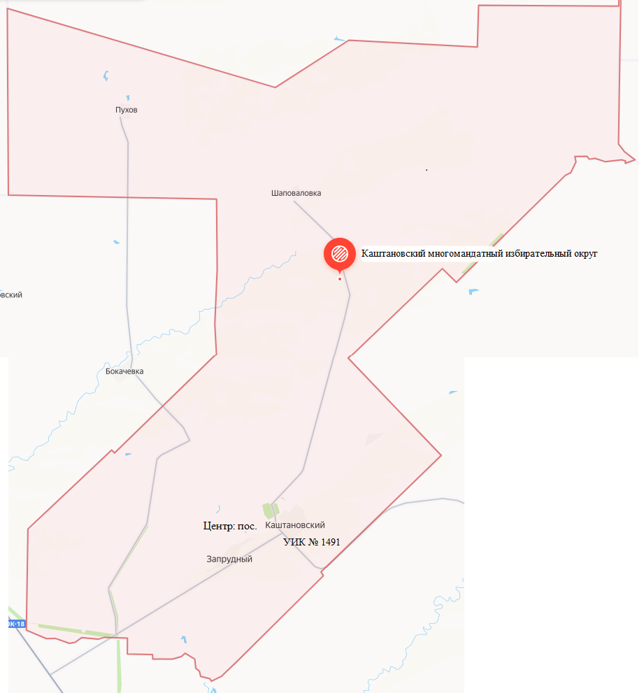 Границы округа: пос. Каштановский, пос. Запрудный, пос. Шаповаловка, пос. Пухов